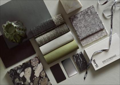Le canapé Tommy, proposé dans cette composition originale et inédite, est associé à la petite table Stage avec le plateau en marbre Marinace Black et frêne noir, placée en face du canapé. Le plateau de la petite table ronde Circus reprend les mêmes finitions. Le projet est complété par les deux petits fauteuils Emilia, dont les dossiers sont capitonnés suivant le travail fait main exclusif de l’atelier BertO de Meda, et sont habillés en tissu art Fly vert sans oublier le tapis en coordonné.